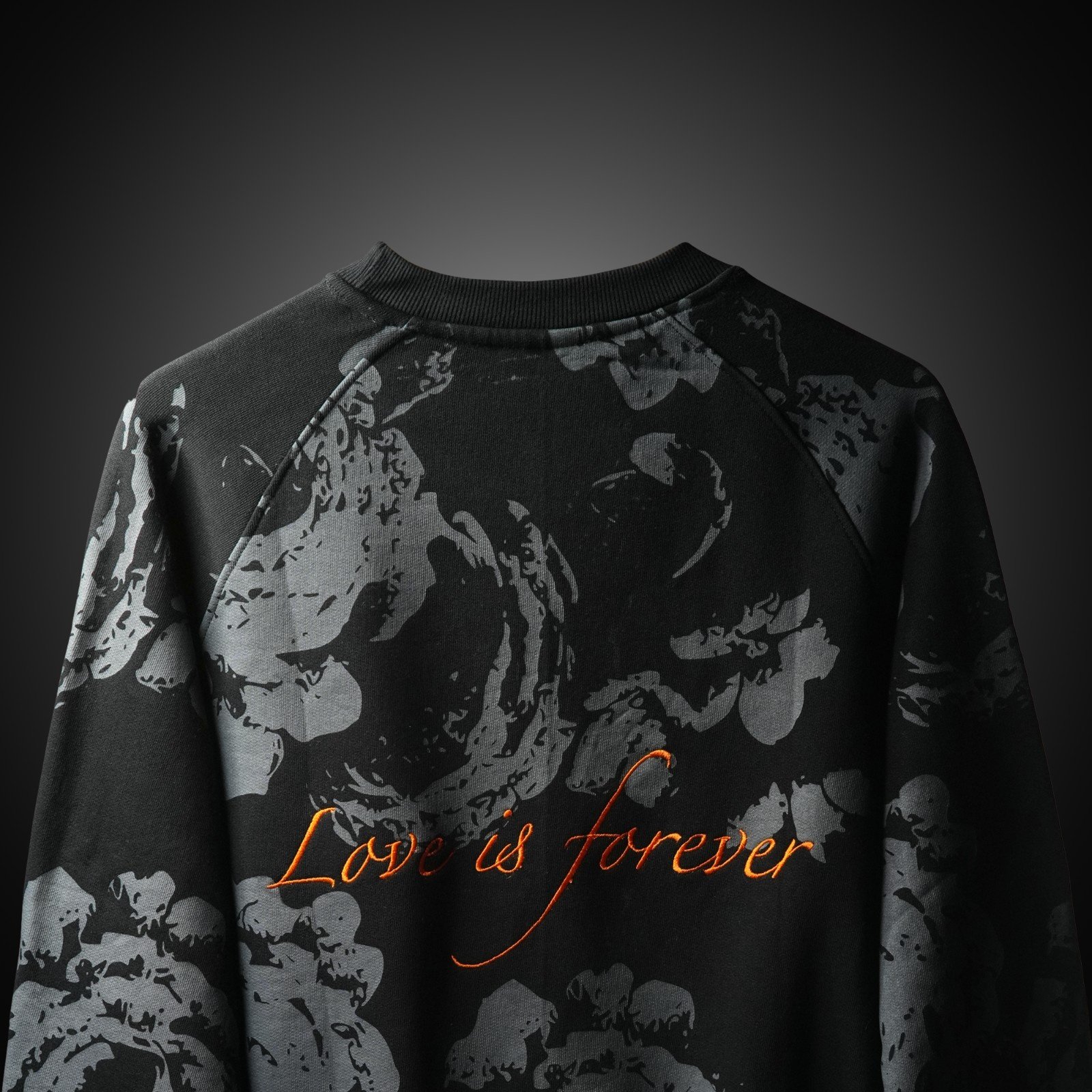 The “Love Is Forever” sweatshirt blends bold floral prints with a timeless message. Crafted in deep black with subtle rose patterns and vibrant lettering — a perfect mix of style, emotion, and street vibe.