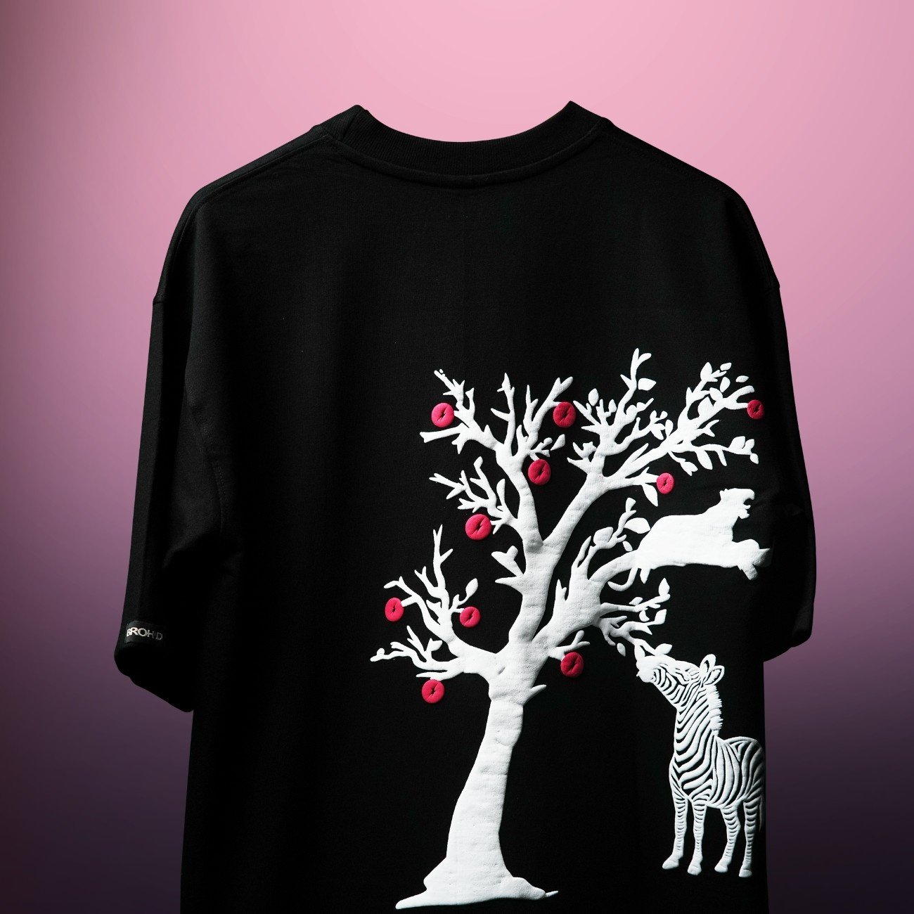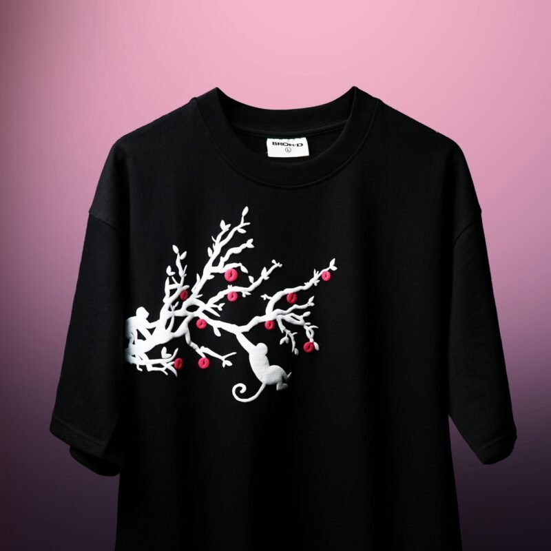 Step into the wild with our Crimson Jungle tee — a bold blend of white wildlife silhouettes and striking red fruits against a rich black canvas. Perfect for lovers of art, nature, and bold fashion.